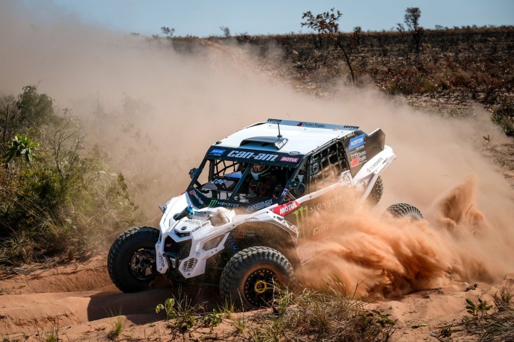 Os 197km de trecho cronometrado em alta velocidade – a chamada “especial” no jargão do esporte – apresentaram um mix de grandes dificuldades aos participantes da segunda etapa do Campeonato Brasileiro de Rally Cross-Country, que está sendo disputada entre os estados do Rio Grande do Norte e Paraíba. Com trilhas pedregosas, trechos perigosos e navegação complexa, o primeiro dia do Rally RN1500 viu a vitória da experiência: o tricampeão mundial Reinaldo Varela conduziu o UTV Maverick X3 Turbo da equipe Monster Can-Am à vitória diante das melhores duplas do Brasil.