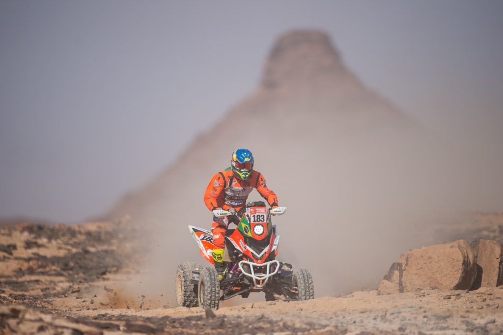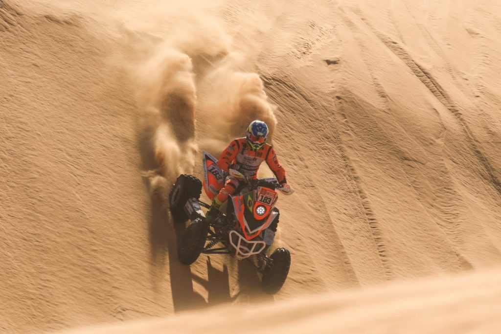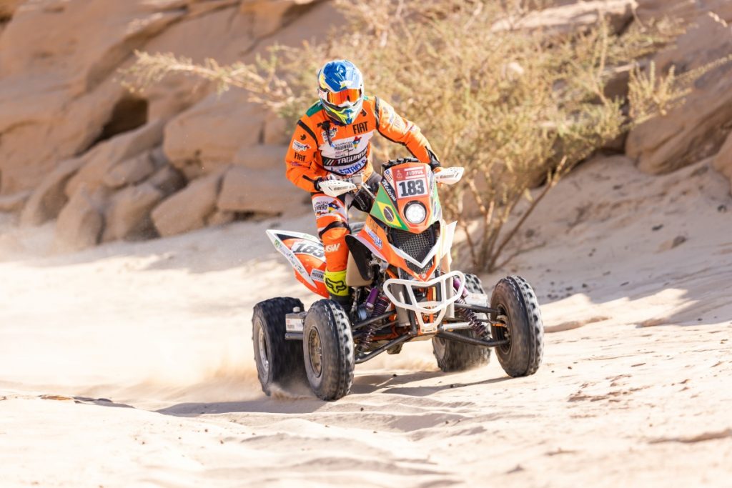 Bisha (Arábia Saudita) – Marcelo Medeiros, piloto da Tagracing Team, foi o mais rápido e conquistou a vitória na 10ª etapa do 44° Dakar, entre os Quadriciclos FIM. O titular da Yamaha Raptor 700, #183, finalizou o trecho cronometrado do dia, de 375 quilômetros, entre Wadi Ad-Dawasir e Bisha, em 4h11min04seg. No acumulado geral da competição, o maranhense, tetracampeão do Sertões, subiu mais um degrau, ficando agora na 6ª posição, com o total de 64h50min32seg.