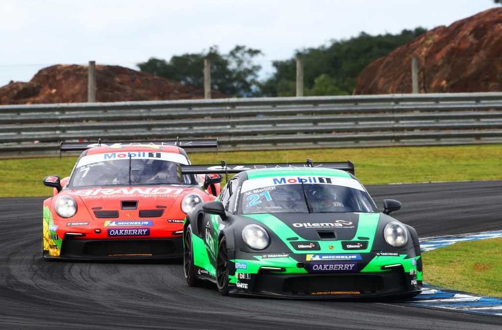 A nota decepcionante mais uma vez ficou para Marçal Muller, atual campeão da Carrera Cup. Como na primeira etapa, ele dominou o treino livre de sexta, o Q1 e o Q2 no sábado (desta vez, com direito a recorde absoluto da categoria em Mogi Guaçu na tomada de tempo). Como na abertura da temporada, ele liderou as voltas iniciais e vinha desenhando a conversão de pole em vitória… e, como na etapa inicial, teve um pneu furado durante a corrida frustrando seus planos.